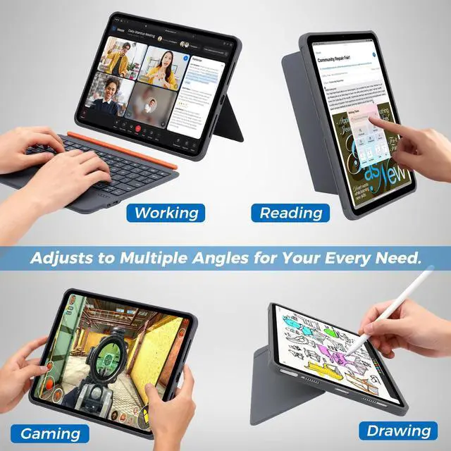 ^^ Magnetic 3-in-1 Functionality: Features a detachable magnetic keyboard and stand; strong magnets ensure firm attachment, letting you quickly turn the case into a typing tool or adjustable viewing standgreat for movies, video calls, meetings, and ideal for office, travel, or outdoor use. PU leather provides full-edge protection against drops and scratches. ^^
