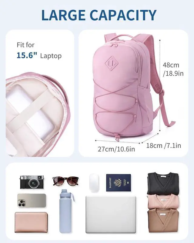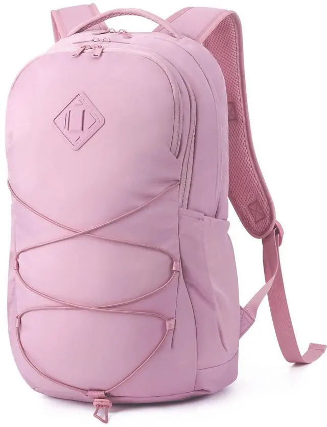 WANDF 15.6 -Inch Laptop Backpack for Women Men Airline Approved Water Resistant Lightweight Travel Bag Casual Backpack for Weekender Business with Whistle Buckle & Elastic Strap (Pink)