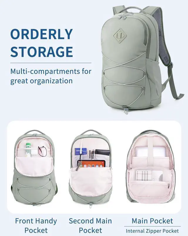 WANDF 15.6 -Inch Laptop Backpack for Women Men Airline Approved Water Resistant Lightweight Travel Bag Casual Backpack for Weekender Business with Whistle Buckle & Elastic Strap (Green)