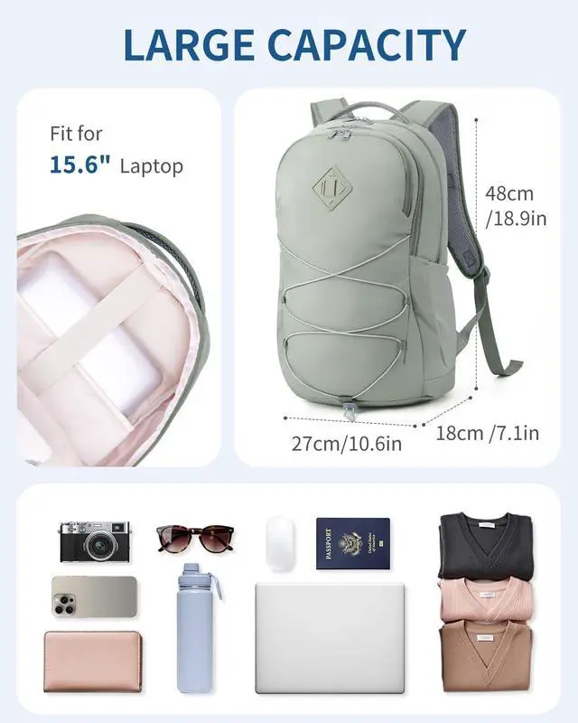 COMFORTABLE & ERGONOMIC---The lightweight travel backpack is designed with sturdy padded straps and an air-mesh ventilated back panel to ensure comfortab