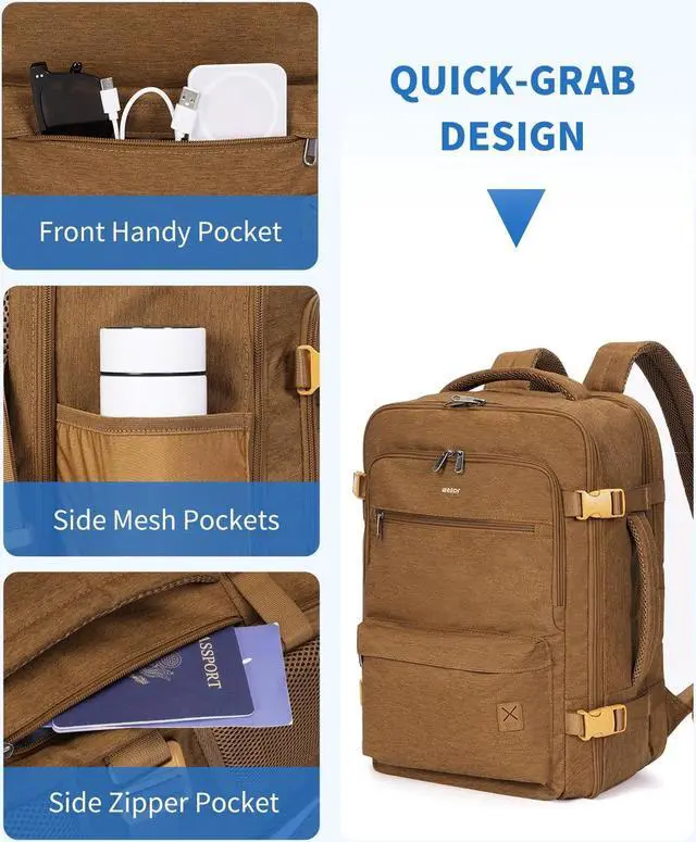 AIRLINE APPROVED CARRY-ON LUGGAGEThe WANDF Carry-On Backpack measures 18x13.5x8 inches, making it a perfect fit for the personal item size requirement of 18 x 14 x 8 inches for Spirit Airlines and Frontier Airlines. This allows you to place it under the seat to avoid oversize charges. Additionally, it is designed to open and fold 180 degrees like a suitcase, making it easy to pass through airport security quickly.