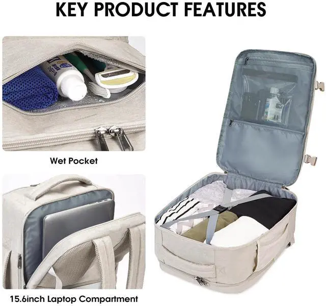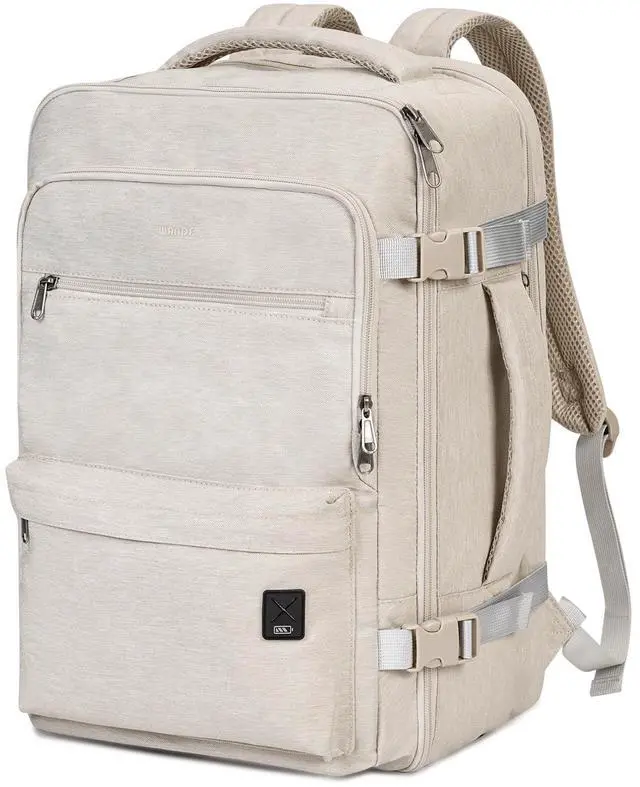 WANDF 17-Inch Laptop Travel Backpack For Spirit Airlines Personal Item Bag 18x14x8 with Wet Pocket for Men Women (Beige)