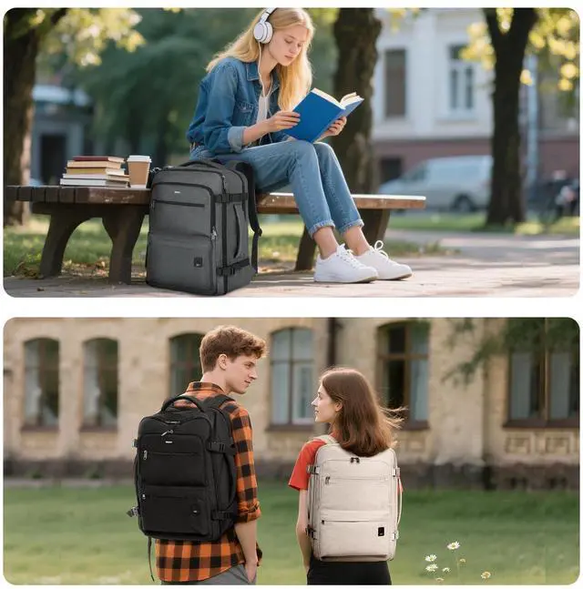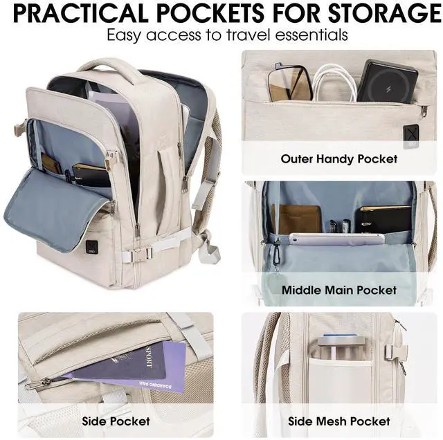 SPACIOUS WITH THOUGHTFUL ORGANIZATION The main compartment includes elastic straps for clothes or shoes, while the middle pocket organizes books, pens, and small gadgets. Front and side zip pockets offer quick access. A hidden anti-theft back pocket helps keep your valuables secure and organized on the go with this versatile travel backpack.