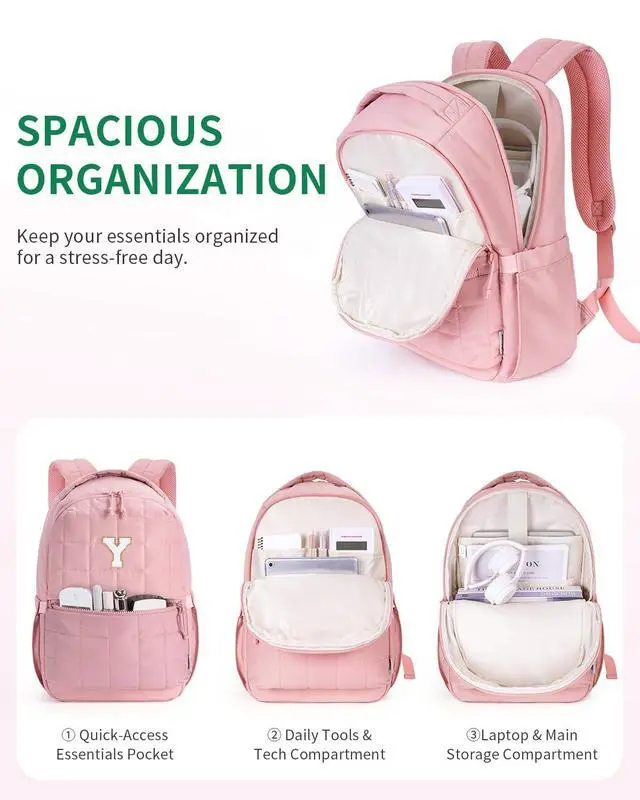 ^^ Built for Comfort & Everyday ConfidenceLightweight yet durable, the quilted backpack features padded shoulder straps and a breathable back panel for all-day comfort. Designed for students, travelers, and go-getters because confidence looks best when you carry it comfortably. ^^ Travel-Ready for Every JourneySized at 11.4" 5.5" 17", this backpack meets most personal-item airline requirements and easily slides over luggage handles. Whether you're off for a weekend getaway or flying home after graduation, its your go-to travel partner. ^^ A Thoughtful Gift for Every MilestoneFrom Back to School to Graduation Season, this personalized initial backpack celebrates her journey stylish, unique, and made just for her.