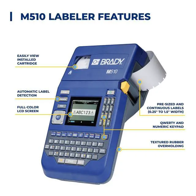 The perfect companion for your project workspace, the M510 delivers high-volume, high-quality labels day in and day out. Whether you're in a lab, field or facility, this printer works as hard as you do. Kit includes Brady Workstation Safety and Facility ID software and a hard case.