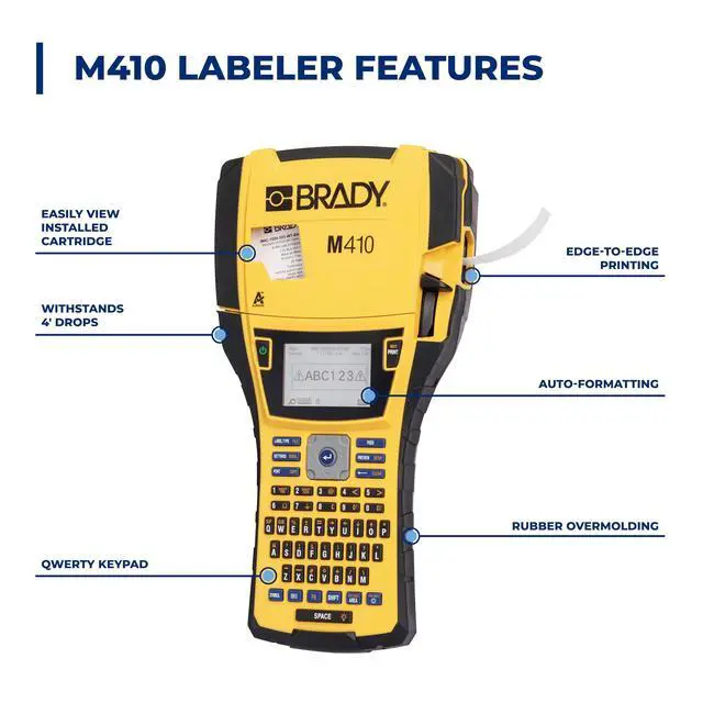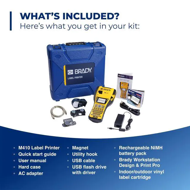 Brady M410 Handheld Portable Label Printer Kit with Product and Wire ID Software, Carrying Case, Rechargeable Battery and Charger, Magnetic and Utility Holders, 11.5" H x 6" W x 3.5" H