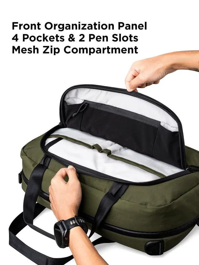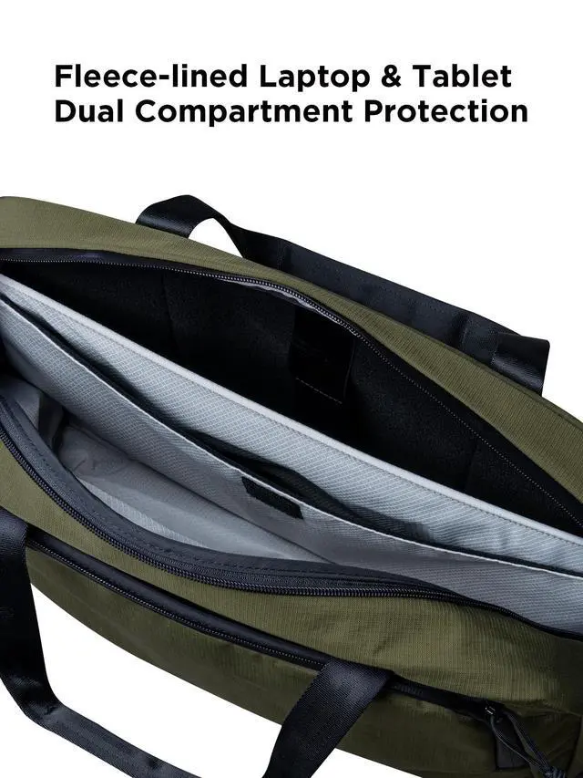 Built with recycled Axoflux 400D ripstop nylon and reliable YKK AquaGuard water-resistant zippers, this briefcase stands up to daily wear and unpredictable weather while maintaining its classic, elegant appearance. The versatile carrying system adapts to your needs - use the comfortable padded handles as a traditional briefcase, attach the removable shoulder strap for messenger bag convenience, or utilize the luggage pass through to secure it to your rolling suitcase. Despite its compact profile, the Bravo Brief accommodates laptops, tablets, documents, charging cables, power banks, and all your work essentials.