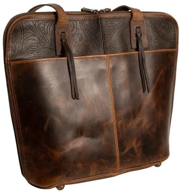 The STS Ranchwear Collection, by Carroll Original Workwear, is a collection of high quality leather apparel and accessories inspired by the ranch life. The brand values integrity, work ethic, family, and quality. This laptop bag features genuine leather/cowhide/cotton blend, 2 exterior snap slip pockets; 1 main zip compartment w/ 1 interior zip pocket, 5 interior card slots, 2 interior pen slots, 1 interior cell phone slot, & 1 interior zip divider pocket, zip closure with sts pull and much more as listed in our bullet points below.