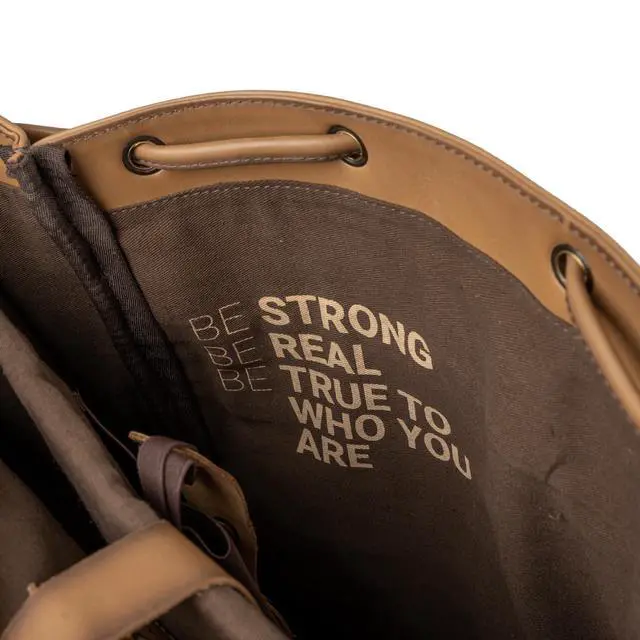 The bag also boasts 2 exterior mesh side pockets, ideal for storing water bottles or other small items that need quick access. Inside, the knapsack offers 2 interior zip pockets, a Velcro slip pocket, and a scrunch pocket, allowing for ample organization of your belongings. It also includes a padded laptop pocket, ensuring your electronic devices stay safe and protected. The carry conceal holder adds an extra level of security, allowing you to discreetly store personal items. Finishing off the design is the STS-branded leather patch and the inspirational quote "Be strong, be real, be true to who you are" inside, reminding you to stay authentic every day.