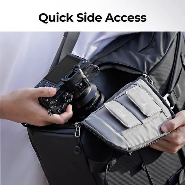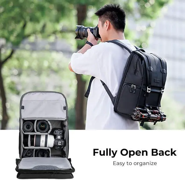 [(Side Access & Back Full open)] Quick side access lets you get your gear in a short time while wearing and capture beautiful moments; Professional back full open design allows you organize all compartments and equipments at a glance as well as keep gears well protected; 2 extra Auxiliary Straps help to organize all your gears clearly and easily anytime anywhere.
