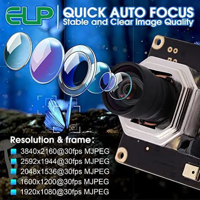 • [(4K Autofocus USB Camera Module with Microphone)] 4K 2160P usb cam module---high definition webcam with microphone is specially designed and optimized for professional video production,surveillance system manufacturing,industrial vision.USB camera with IMX415 sensor provides crystal clean image. The maximum resolution of some software/screens can only support 1080P or 720P, In order to enjoy ultra clear 4K 2160p image or video, Please make sure your software and screen support 4K.