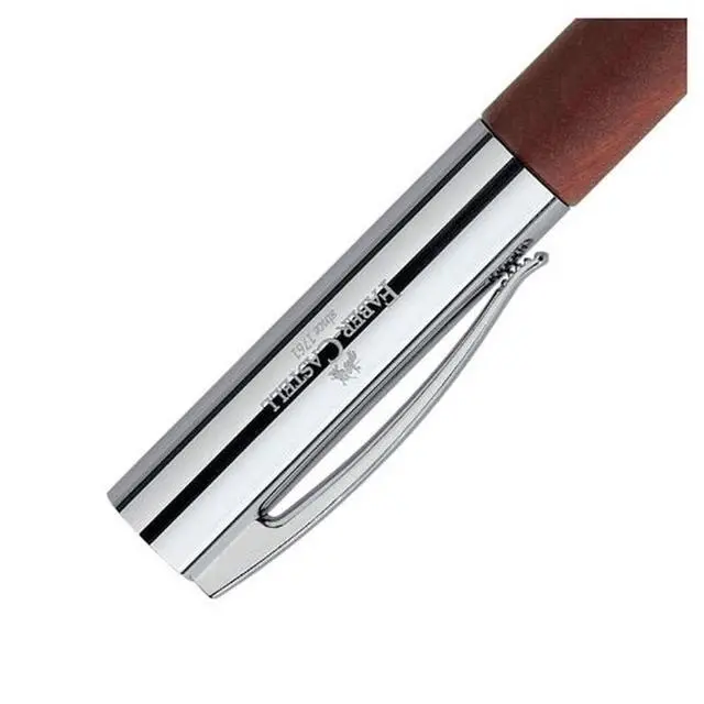 The AMBITION fountain pen has a brown barrel made of pear wood. The cap, the end and front piece are made of high-gloss chrome-plated metal. Spring loaded metal clip Thanks to the cartridge converter system, the fountain pen is environmentally friendly. With a high-quality stainless steel nib in nib size B.