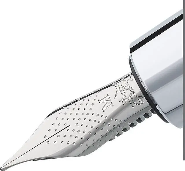 The e-motion fountain pen is environmentally friendly thanks to the cartridge and converter system. Shaft is made of black pear wood. The cap, the front and end pieces are high-gloss chrome-plated. The nib is made of durable stainless steel and has the nib size
