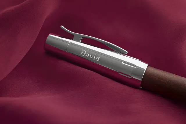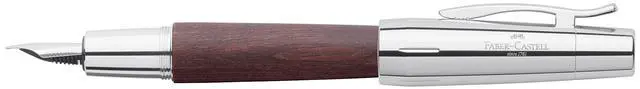 The e-motion fountain pen is environmentally friendly thanks to the cartridge and converter system. Shaft is made from dark brown pear wood. The cap, the front and end pieces are high-gloss chrome-plated. The nib is made of durable stainless steel and has the nib size B.