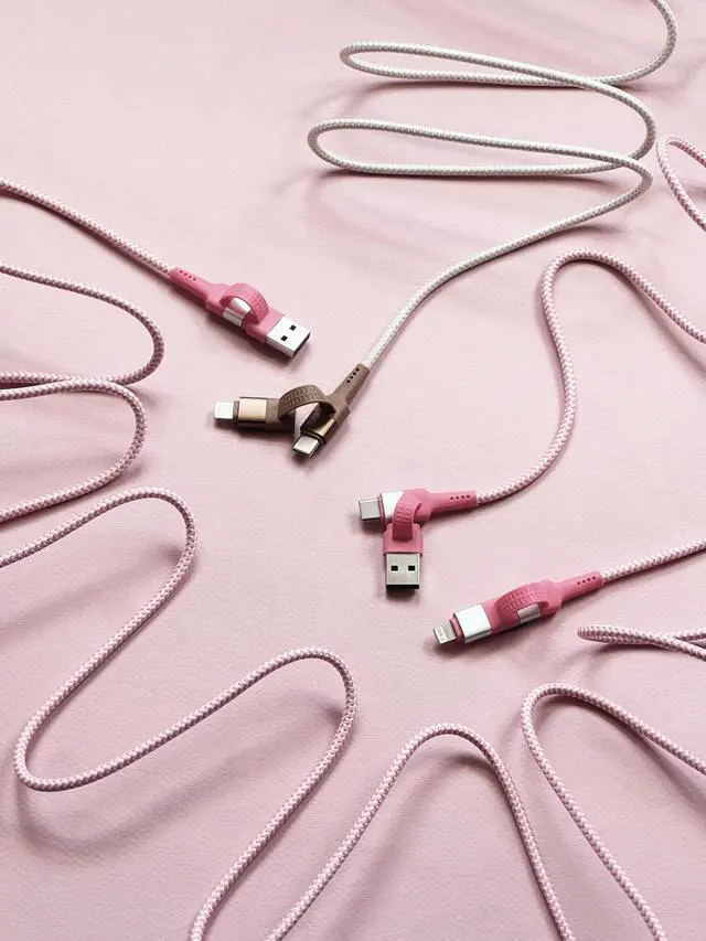 Two Faced 6 ft. Woven Cable. This is truly one cord to charge ALL THE THINGS. The Two Faced cabie is one for all. With tow tips on each end- Lightning & USB-C on the device end; USB & USB-C on the wall end - it works with all your things. Time to swap the old cble mess in your drawer with this single cord. This 6' super-long, flexible cord doesn't crack like the loads of white plastic cables we are sick to death of replacing. Reinforced tips don't wiggle loose.