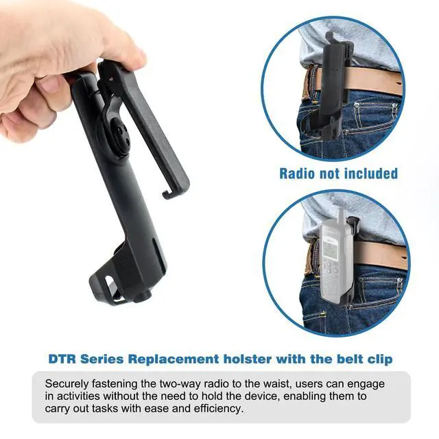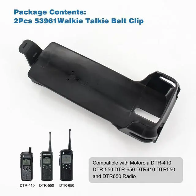 Product Features: 1. Brand New RLN5915A Swivel Carry Holster / Belt Clip that is form fitting to your radio. Motorola DTR Series Radio. compatible with Motorola DTR-410 DTR-550 DTR-650 DTR410 DTR550 and DTR650 Radio. 2. Replacement holster with swivel belt clip. 3.
