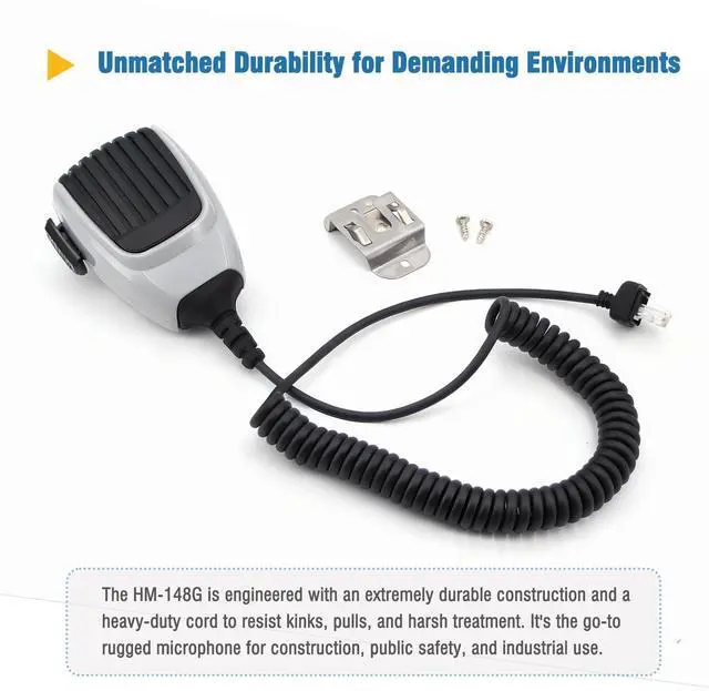 PERFECT ICOM COMPATIBILITY This 8-pin ICOM microphone is specifically engineered for a wide range of models including IC-F5061, IC-F1721, IC-F6021, IC-F5011, IC-F221, IC-F5021, and IC-F5360D (check full list in description). ^^ BUILT TO LASTHeavy-duty hand microphone constructed to withstand the toughest job site conditions. Its rugged design ensures reliable performance day in and day out. ^^ GLOVE-FRIENDLY OPERATIONThe large, well-weighted body and positive-action PTT switch are designed for easy, mistake-free operation, even when you're wearing work gloves. ^^ DURABLE & USER-FRIENDLY DESIGN - Built with a robust casing and a flexible, coiled cord that resists tangles and strain.