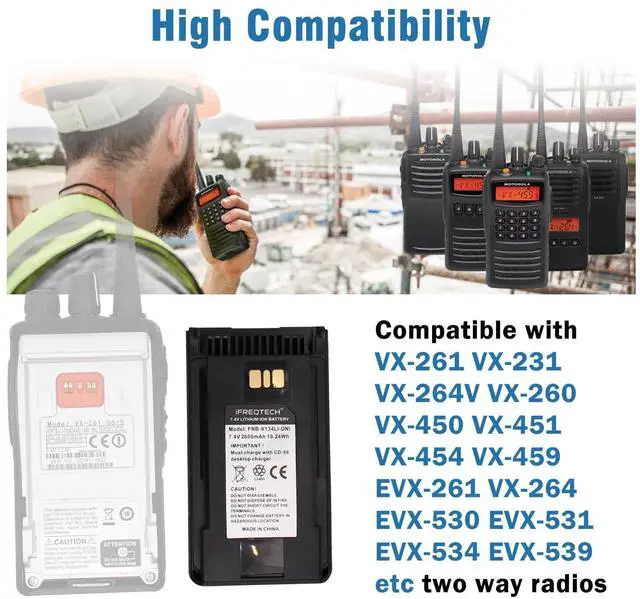 Compatible Battery Model/Part Numbers: Vertex/Mmotorola standard FNB-V134 FNB-V134L battery. Compatible with Vertex/Mmotorola standard