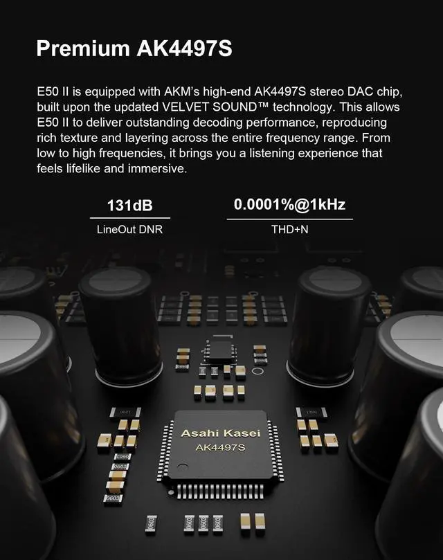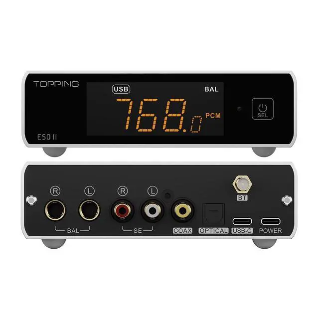 Smartphone App Control TOPPING E50 II Works seamlessly with the TOPPING Home app, allowing you to switch inputs/outputs, adjust EQ, control volume, and manage your entire audio chain directly from your smartphone in real time. ^^ Premium AK4497S DAC Performance The E50 II Equipped with AKM AK4497S VELVET SOUND DAC chip to deliver rich detail, natural timbre, and immersive sound across the full frequency range. ^^ DAC & Preamp Modes with Flexible Outputs Switchable DAC and preamp modes with RCA and TRS outputs, selectable output levels, touch controls, and remote control support for flexible system integration.