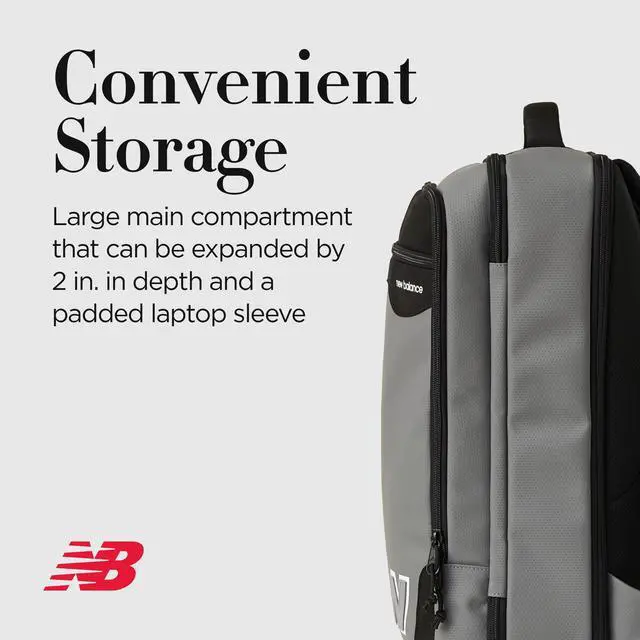 This commuter backpack is the perfect daypack for someone on-the-go. The large main compartment can be expanded by 2 inches in depth and features a padded laptop sleeve. On the front of the gym bag, you'll find both a gusset compartment and a front zipped stash pocket. The work bag has a protected base, and the padded top handle for easy carrying by hand or hanging on a hook. Back pack measures 5.1 D x 20.5 H x 12.6 W in inches and adjustable straps can be adjusted from 29 to 37 inches.