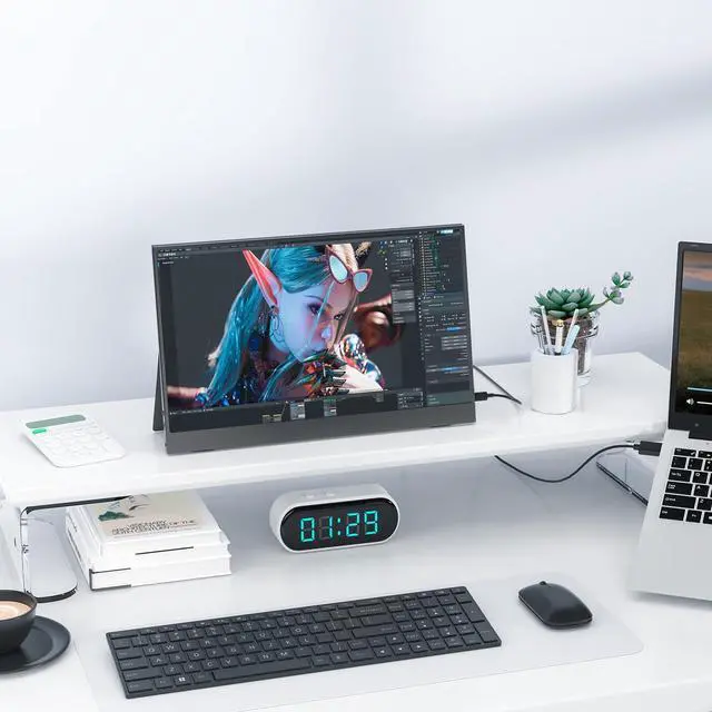 Easy to carry:Laptop screen extender slim at 0.4" and weighing 1.7lbs,363 mm * 225 mm portable size of the display, dual speakers, separate portable stand, display for travel and outdoor use, convenient for office and entertainment device to play anytime, anywhere.
