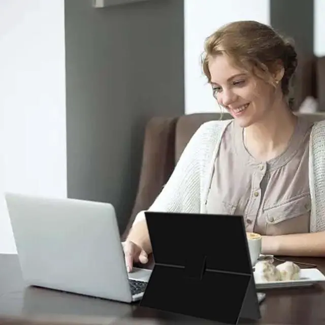 • Portable Monitor for Laptop Laptop screen extender slim at 0.4"and weighing 1.1lbs,dual speakers, separate portable stand,this small monitor is your ideal travel companion. The lightweight build makes it easy to carry alongside your laptop,while the 14" screen provides ample space for editing documents,watching movies,or extending your workspace.