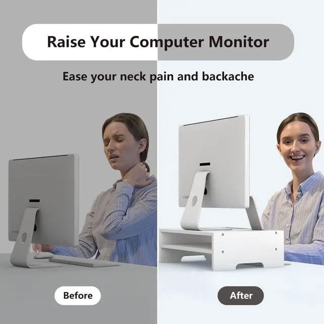 Goodbye to backaches: we are exposed to various health challenges when we work or game for hours and keep a uncomfortable position; raise your monitor could help you improve hunched posture to relieve strain and ache on your neck, shoulder, and back;