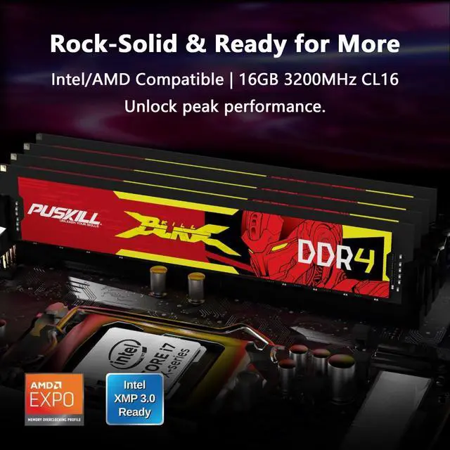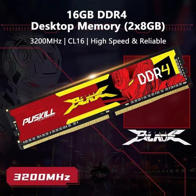 PUSKILL DDR4 RAM: Unlock Reliable, High-Performance Speed for Your PCMaximize your system's potential without breaking the bank. The PUSKILL DDR4 16GB (2x8GB) 3200MHz CL16 memory kit is engineered for gamers, streamers, and everyday users who demand a smooth, responsive, and reliable computing experience. Its the smart choice for a proven performance upgrade. Why 3200MHz CL16 is the Gamer's ChoiceIn the world of DDR4, this combination is king. The 3200MHz speed provides the bandwidth modern games and applications crave, while the low CL16 latency ensures quick data access.