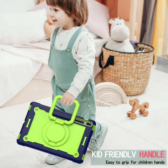 Dteck Shockproof Case with Handle & 360 Swivel Kickstand for Samsung Galaxy Tab S8 Plus/S7+/S7 FE 12.4", Navy Blue & Olivine