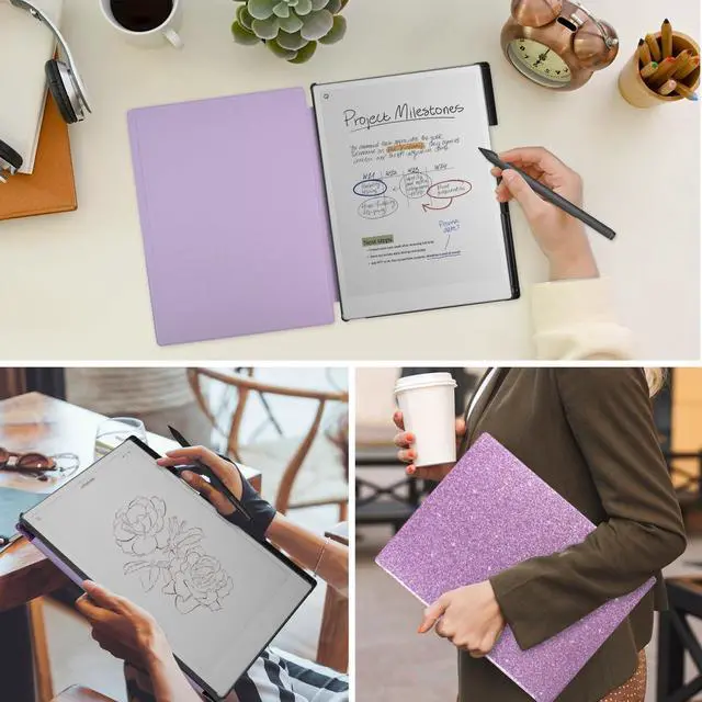 Caweet Case for Remarkable Paper Pro 11.8" 2024, Slim Hard Back Shell Protective Book Folio Cover with Built-in Pen Holder and Auto Wake/Sleep, Glitter Purple