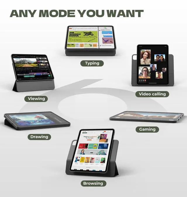 Multiple Viewing Angles: With flexible folding modes and 105deg-160deg adjustable angles, this magnetic stand case allows you to position your iPad Pro 13" at the perfect angle for any task. Whether it's drawing, writing, streaming, or reading, it has you covered