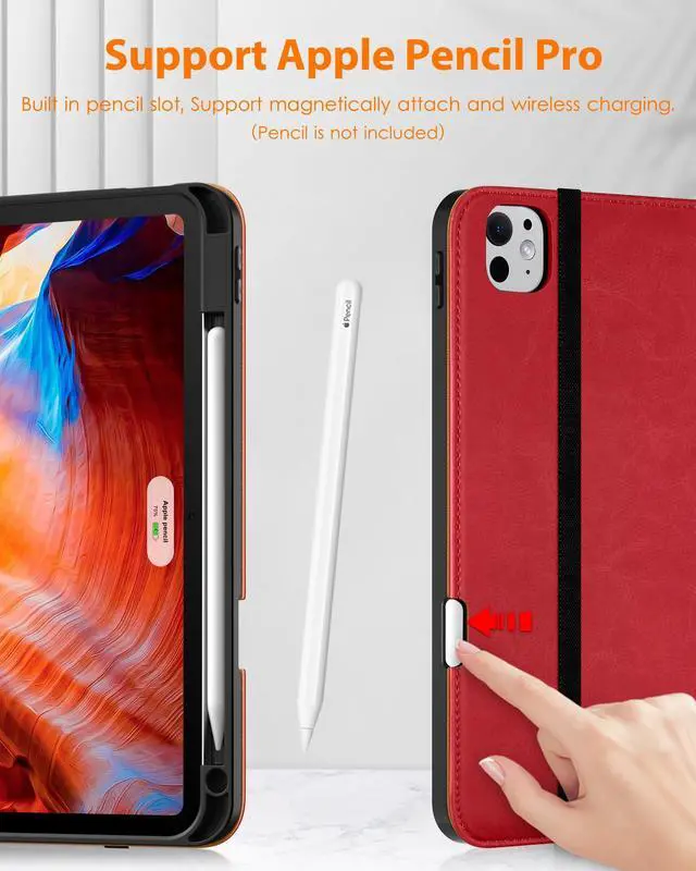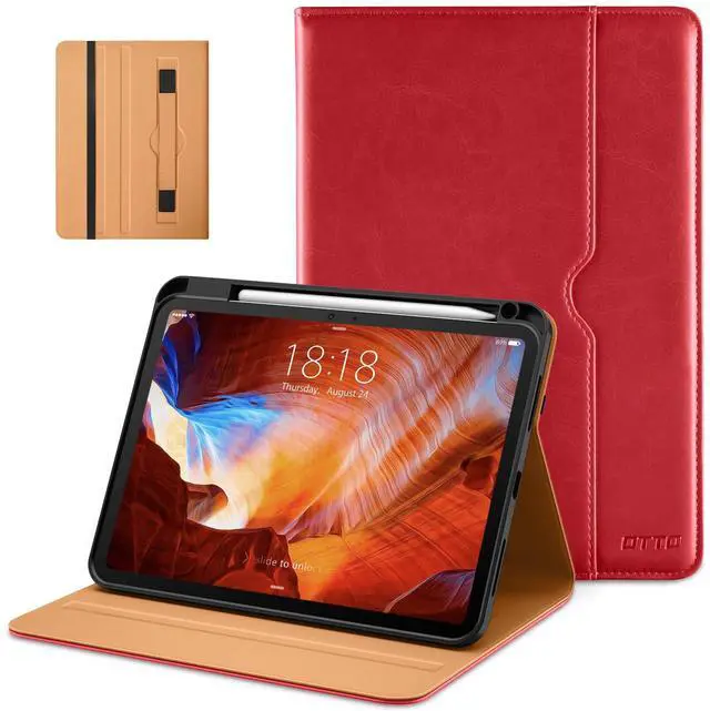 DTTO for iPad Pro 11 inch case (M4) 2024, Premium Leather Business Folio Stand Cover with Pencil Holder - Auto Wake/Sleep and Multiple Viewing Angles, Red