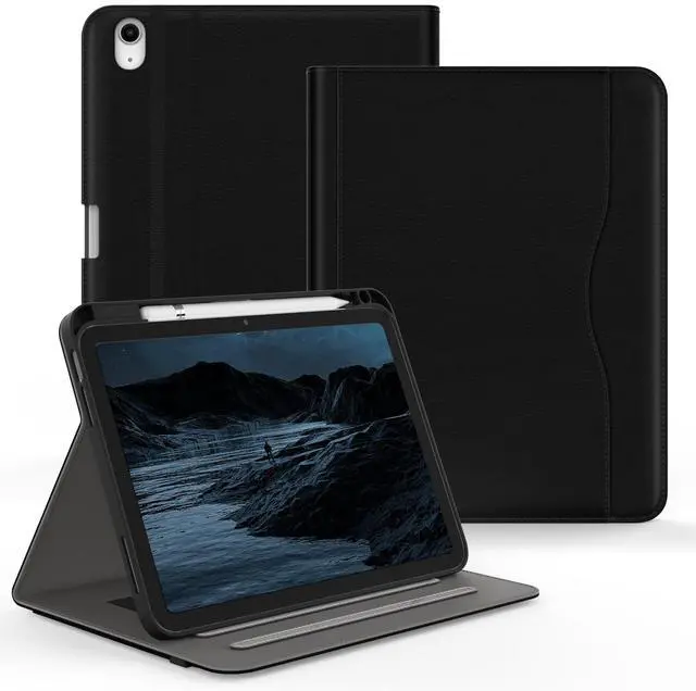 Jarviwiin Case for iPad 11-inch (A16) 2025 / iPad 10th Generation 2022 10.9 inch, Multi-Angle PU Leather 11th/10 Gen Cover with Pencil Holder/Hand Strap, Auto Wake/Sleep,Black