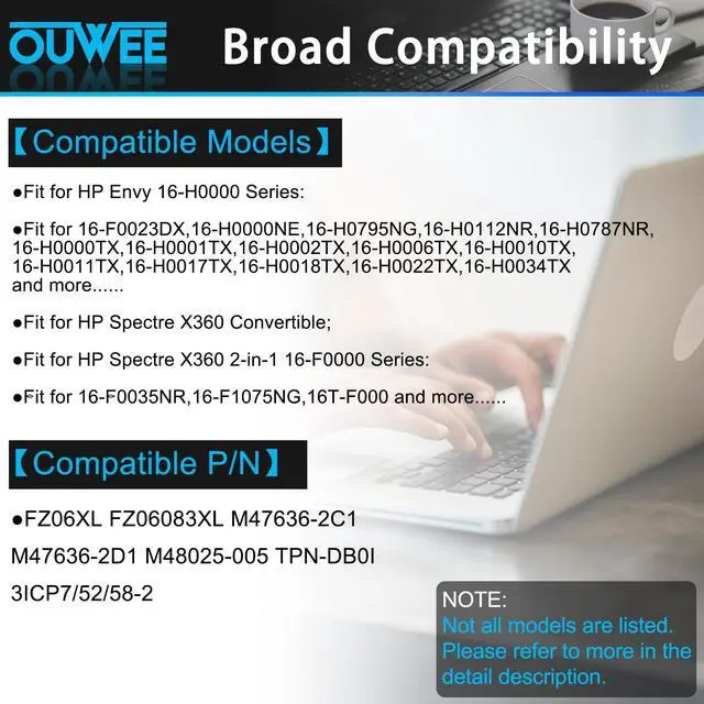 OUWEE FZ06XL Laptop Battery Compatible with Compatible with HP Envy16-H0787NR Envy 16-H0000TX 16-H0011TX 16-H0000NE 16-H0795NG Spectre X360 2-in-1 16-F0035NR M47636-2C1 M47636-2D1 M48025-005 TPN-DB0I