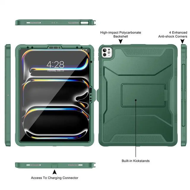 [(Rugged Armor Shockproof Protection)] Multi-layered hard PC back and flexible TPU bumper provide your iPad Air / Pro 13-Inch 2025 2024 & iPad Pro 12.9 2022 2021 2020 strong protection against drops,bumps, and impacts, also easy to install