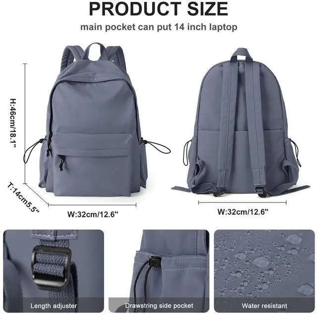 [(Durable Backpack)] The backpack for women men take durable and practical high quality water resistant nylon, the material is anti-tear and easy clearing.Sturdy two-way zipper,smoother,flexible opening and closing.Adjustable padded shoulder straps for carrying comfortable. Side pockets with drawstring to avoid stuffs drop down.