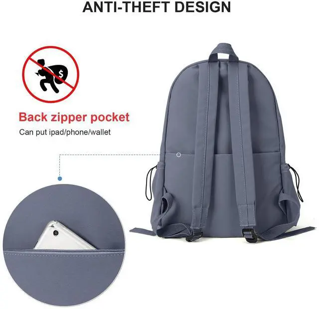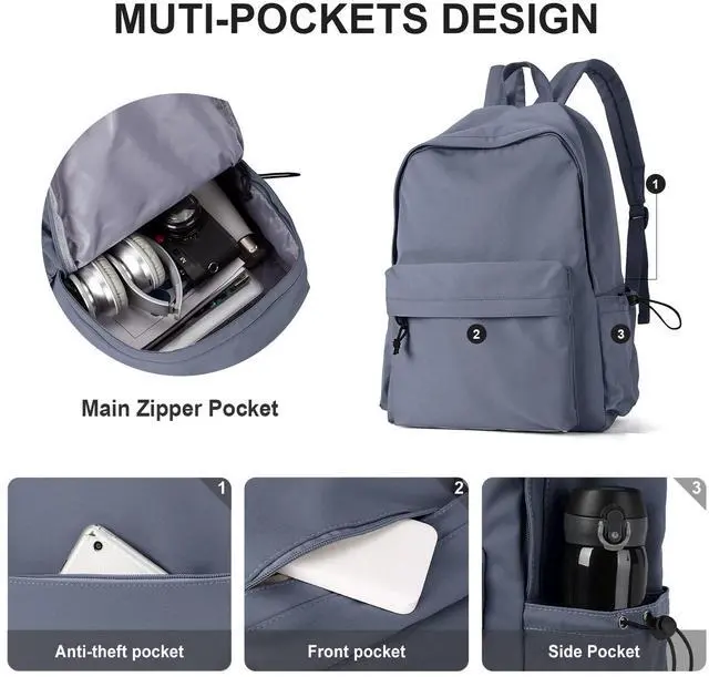 [(Multi-pocket Backpack)] The book bag with a main zipper compartment,a zipper front pocket,two drawstring side pockets and One anti-theft zipper pocket.The side pockets can hold water bottles and umbrellas. The spacious compartments and multiple pockets of the backpack keep y