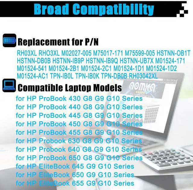 [(Compatible Laptop Models)] for HP ProBook 430 G8 G9 G10 Series; for HP ProBook 440 G8 G9 G10 Series; for HP ProBook 445 G8 G9 G10 Series; for HP ProBook 450 G8 G9 G10 Series; for HP ProBook 455 G8 G9 G10 Series; for HP Probook 630 G8 G9 G10 Series; for HP Probook 640 G8 G9 G10 Series; for HP ProBook 650 G8 G9 G10 Series; for HP EliteBook 645 650 655 G9 G10 Series.