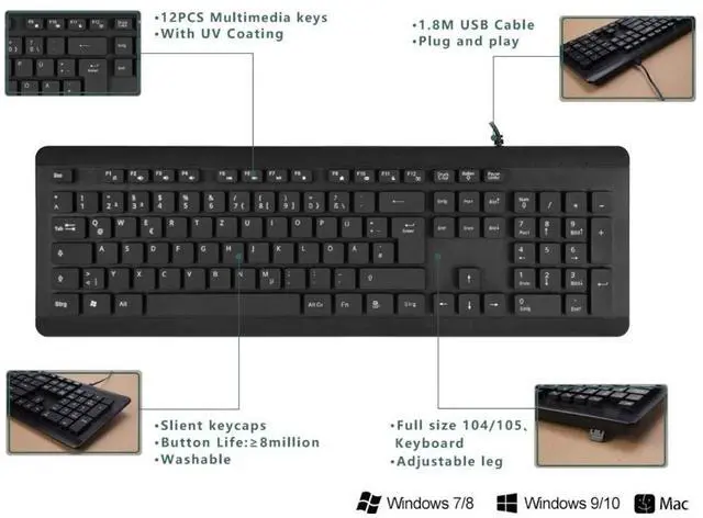 Rubberized feet and ADJUSTABLE tilt legs provide you with the best typing experience.