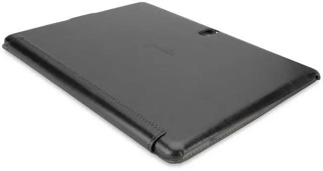 Look closely at the FolioView Leather Case and you will find that its full of details that set it apart. The features start with a front cover that folds to create an integrated viewing stand and a contoured hardshell case backing snaps your Galaxy Tab S 10.5 securely in place. The stylish synthetic leather exterior features an interlaced square pattern and the soft two-tone interior has built in business card/utility pockets. In addition, the FolioView Leather Case is perfectly sized to match the Galaxy Tab S 10.5 's slim dimensions and weight. A case this sleek becomes hard to live without when the leatherette exterior combines with the ultra low profile design for lightweight protection that cant be beat.