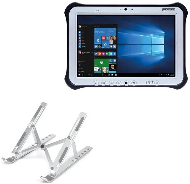[ERGONOMIC COMFORT] BoxWave Stand and Mount Compatible With Panasonic Toughpad FZ-G1. Compact QuickSwitch Laptop Stand ELEVATES your screen and your posture! Designed to reduce neck and back strain, this compact stand helps you work smarter, longer, and more comfortably. *** PLEASE NOTE, TOUGHPAD FZ-G1 DEVICE NOT INCLUDED *** ^^ [7 CUSTOM VIEWING ANGLES] Choose from seven ADJUSTABLE angles to find the perfect height and tilt for your device. Whether you're working, reading, or streaming, enjoy a clear view with zero hunching. ^^ [STABLE DESIGN] Equipped with anti-slip rubber feet, the Compact QuickSwitch Laptop Stand stays FIRMLY in place - even during intense typing sessions or view calls.