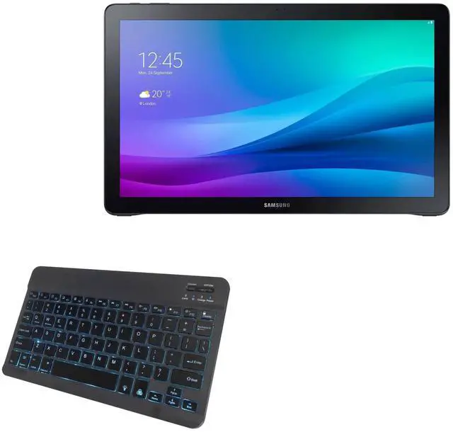 [Backlit] BoxWave Keyboard Compatible With Samsung Galaxy View 18.4 (SM-T670). Features an integrated LED backlight that illuminates your keys, making it easy to type in low-light or dark settings. Includes limited 3rd party tech support for your device (up to 3 inquiries via messaging) - not affiliated with or endorsed by Samsung *** PLEASE NOTE, SAMSUNG GALAXY VIEW 18.4 (SM-T670) DEVICE NOT INCLUDED *** ^^ [Customizable] Choose from seven vibrant LED backlight colors to match your style or mood. ^^ [Reliable Wireless Connectivity] Connects quickly and easily via Bluetooth 3.0 for a stable, responsive typing experience.