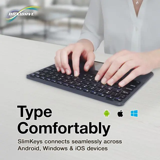 Turn it on and press any key to automatically reconnect. Its advanced Bluetooth Version 3.0 is also designed to avoid the battery-draining cost of leaving the older bluetooth version on all the time. ^^ [PORTABLE] The SlimKeys Bluetooth Keyboard is the perfect travel companion. Stow away your keyboard easily in your purse, bag, or luggage with its CONVENIENT SLIM size. When it's time to type that long text message, email, or article, you can quickly set it back up with even less effort!