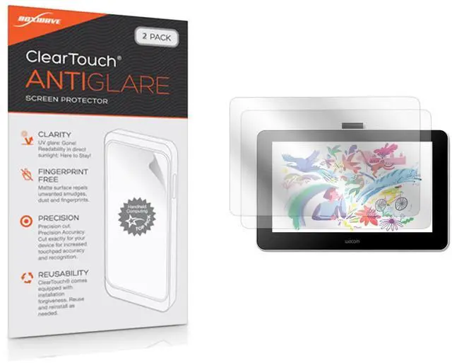 BoxWave Screen Protector Compatible With Wacom One. Keep your screen pristine with BoxWave's ClearTouch Anti-Glare (2-Pack), the perfect blend of anti-glare and optical clarity designed for all indoor and outdoor use. Disperses light so the glare does not reflect back into your eyes. Whether you're using your device outdoors with natural lighting, or viewing indoors with overhead lights, the ClearTouch Anti-Glare REDUCES 90% UV rays, protecting your eyes. Ultra smooth matte surface gives you a FUTURISTIC high-end look and feel to your device screen. Has a paper-like surface that is comfortable to the touch, and pleasing to the eye! The special GLUELESS adhesive will never leave any sticky residue that may damage your screen.