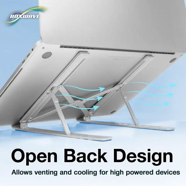 ^^ [STABLE DESIGN] Equipped with anti-slip rubber feet, the Compact QuickSwitch Laptop Stand stays FIRMLY in place - even during intense typing sessions or view calls. ^^ [ULTRA PORTABLE] Folds down to just 1.5 x 10 inches (4 x 25cm) - perfect for tossing into your backpack or laptop sleeve. Take ergonomic comfort with you WHEREVER you go. ^^ [KEEP YOUR DEVICE COOL] The open-back design promotes natural AIRFLOW, helping to prevent your device from overheating - even during long work sessions or streaming marathons.