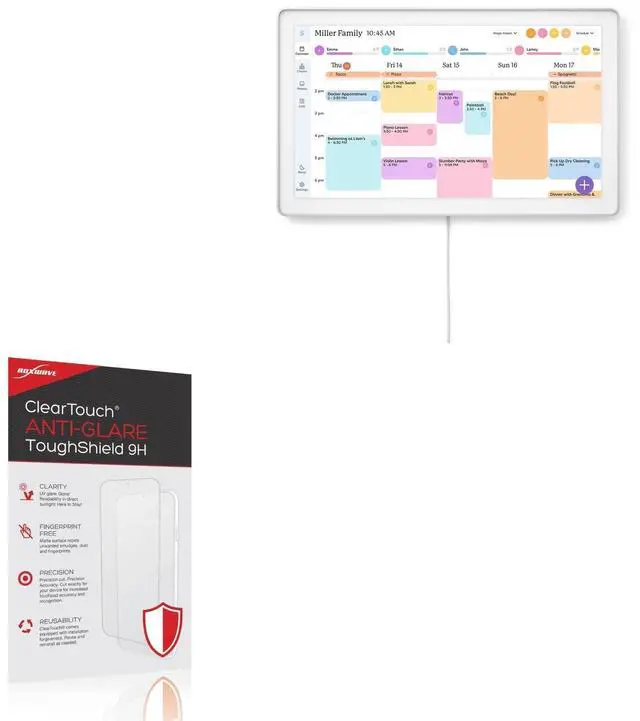 [TOUGH AND FLEXIBLE] BoxWave Screen Protector Compatible With Skylight Calendar Max (27 in). With a hardness rating of 9H, the ClearTouch Anti-Glare ToughShield has the STRONGEST possible rating to protect the screen on your precious device. Just as strong as glass but without the possibility of chipping and cracking. *** PLEASE NOTE, CALENDAR MAX (27 IN) DEVICE NOT INCLUDED *** ^^ [ANTI-GLARE] This award-winning screen protector disperses light so that the glare does not reflect back into your eyes. Whether you're using the device outdoors with natural lighting, or viewing indoors with overhead lights, the ClearTouch Anti-Glare ToughShield 9H REDUCES 90% of UV rays caused by reflected light, protecting your eyes.