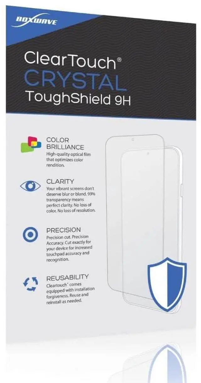 ^^ 👀 [GLASS-LIKE SURFACE] Made with the strongest film material to protect your device while giving you the ORIGINAL look and feel of your screen. ^^ 🧩 [PERFECT DESIGN] Specifically designed for your device. These ClearTouches will fit your device screen perfectly, GUARANTEED! All ClearTouches are PRECISION-CUT to fit your device screen's exact dimensions along with any contours and cut-outs. All functionality will be fully accessible. ^^ ✌ [TWO-PACK] Comes with TWO (2) ClearTouch Crystal ToughShield 9H screen protectors and installation accessories. Save the extra one for later, or share it with a friend!