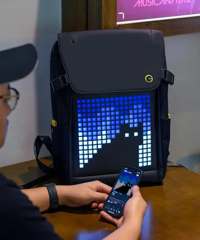 Divoom Pixoo M Backpack: Illuminate your tech-savvy lifestyle with the 16*16 pixel screen. This unique pixel display design not only showcases your personality and creativity but also adds a touch of futuristic fashion to your daily travels.