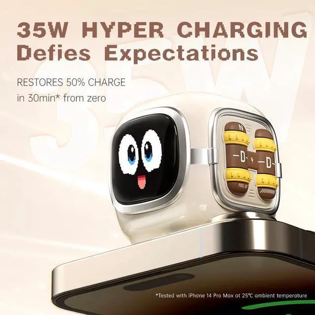 Fast & Efficient GaN ChargingCharge your iPhone 15 Pro Max to 56% in just 30 minutes (Divoom Lab tested) with this 35W charger. USB-C charger with GaN tech keeps it compact and cool, providing fast charging for iPhone, iPad, Galaxy, Switch, and more.