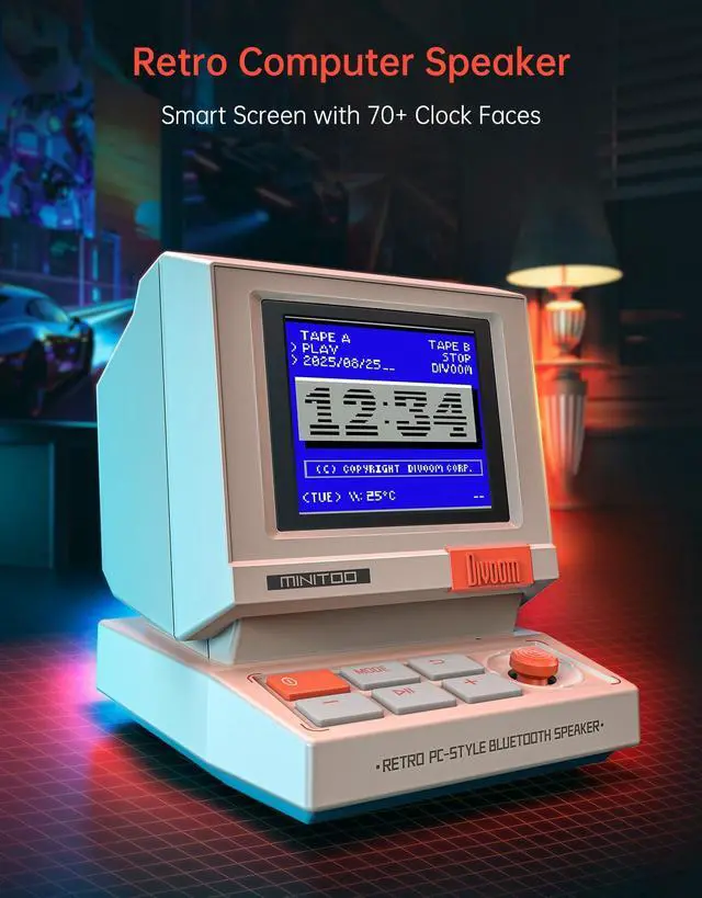 Divoom MiniToo Retro PC-Style Computer Speaker, Smart Pixel Screen with DIY Faces, Bluetooth & USB Audio, Alarm/White Noise Clock, Desk Setup Gift for Bedroom, Office & Gaming